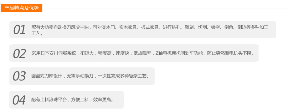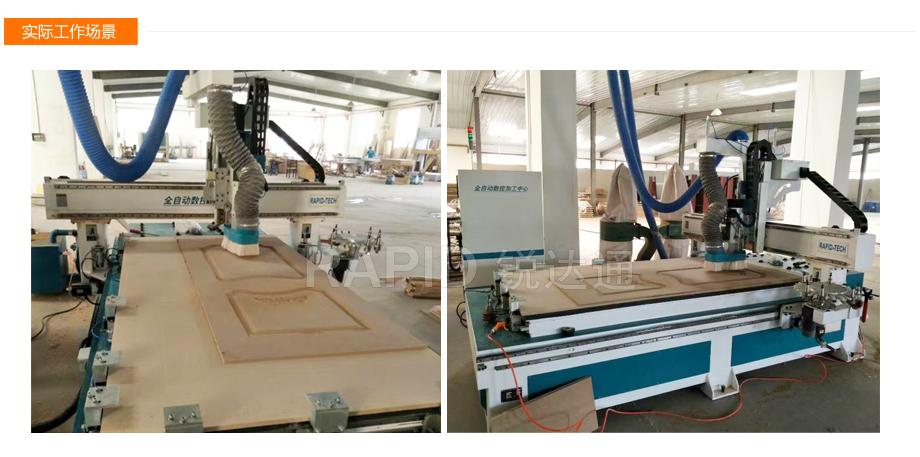 本機可對實木門、實木家具、板式家具、實現鉆孔、雕刻、切割、鏤空、倒角、倒邊等多種加工工藝,配有大容量自動換刀主軸,復雜工序一次完成,大大提升生產效率。