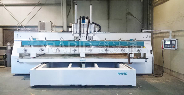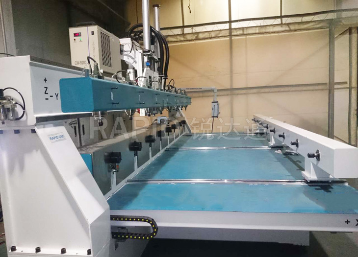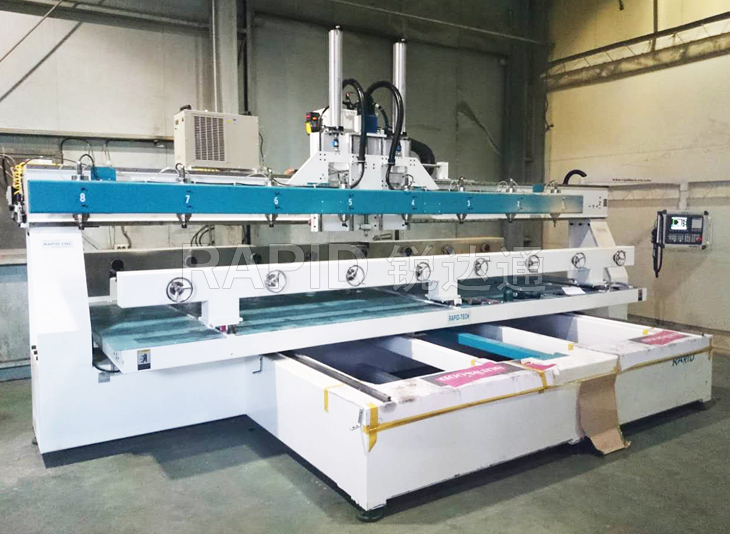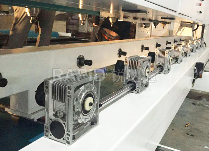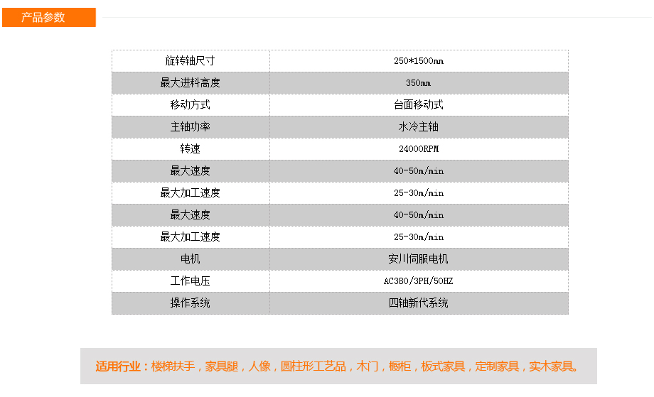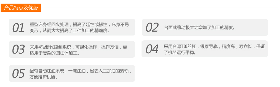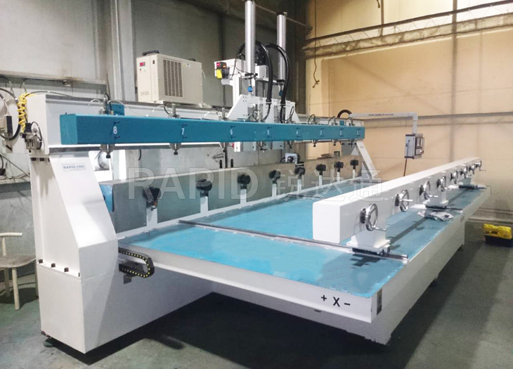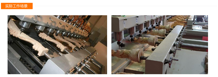 本機為臺面移動式8頭圓柱雕刻機,可同時加工8根圓柱工件。 臺面移動的方式提升了加工精度。4軸新代系統全面支持復雜的圓柱體加工,操作面板人性化。 而且本機所有配件均來自世界知名品牌,如日本安川伺服電機,意大利原裝進口排鉆,德國亨利安精密斜齒條,臺灣銀泰精密導軌滑塊,臺灣新代系統,保證了機器的高精度,高速度運行,為您的生產保駕護航!