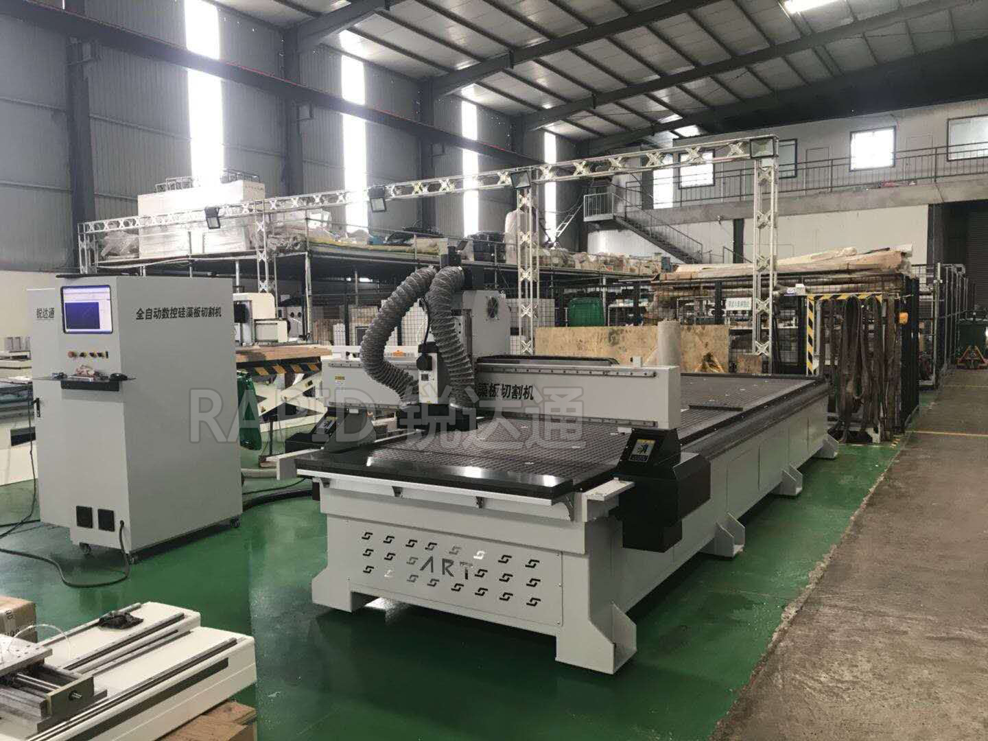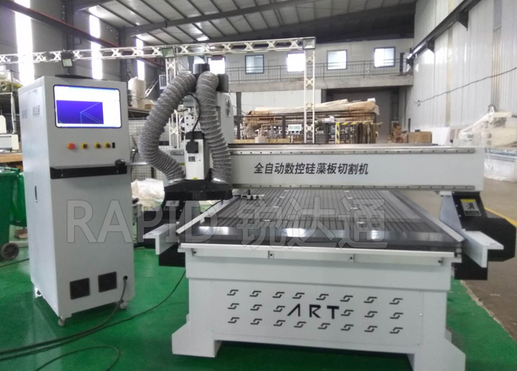 硅藻泥板切割機,為我公司獨家研發客戶定制機器,主要用于硅藻泥板的切割加工,機器臺面為真空吸附,吸附能力較好,可保證切割小板不跑版,并且采用雙工位設計,整體提高加工效率,機器整體配置均為高配,切割板材效率較高。