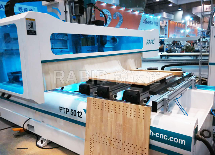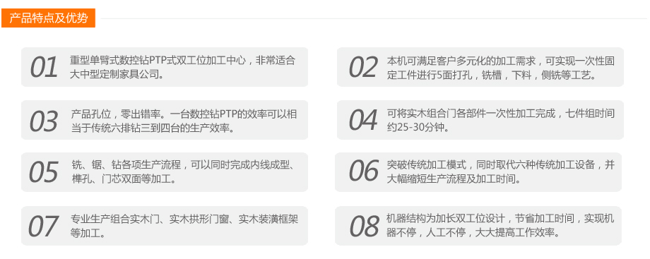 本款產品是全能型PTP數控鉆加工中心,采用重型床身結構,整體經過回火處理,使得床身不易變形。雙工位設計大大提升了加工效率,而PTP 可移動式臺面設計使打孔變得更加方便,完全可替代多排鉆,實現一體化打孔。為方便實木加工,機器后部增加了實木門加工復合成型刀架,可根據您的加工需求隨時換刀,方便,快捷。