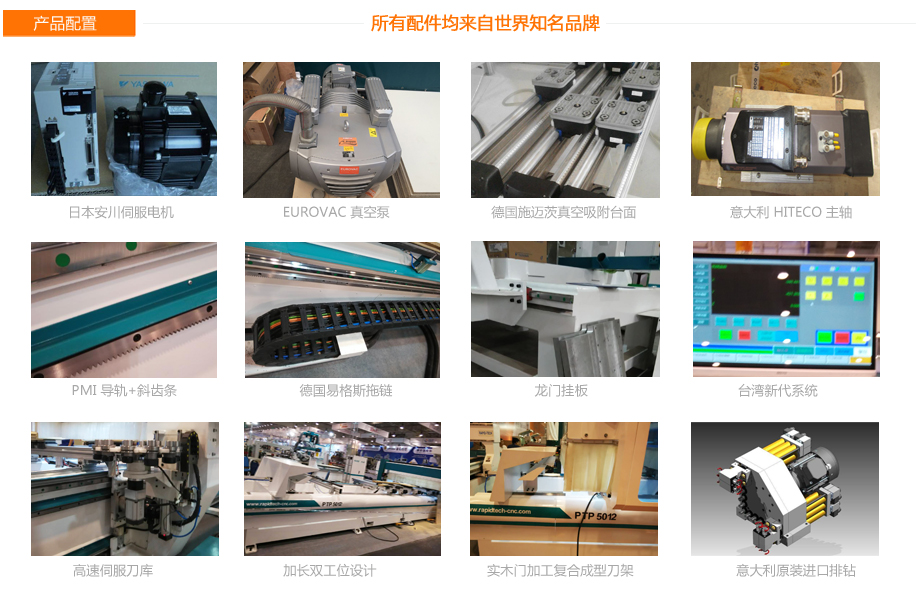 本機所有配件均來自世界知名品牌,如日本安川伺服電機,意大利原裝進口排鉆,德國亨利安精密斜齒條,臺灣銀泰精密導軌滑塊,臺灣新代系統,單臂式床身結構設計,敞開式進料,上下料更加方便、簡單、便捷。